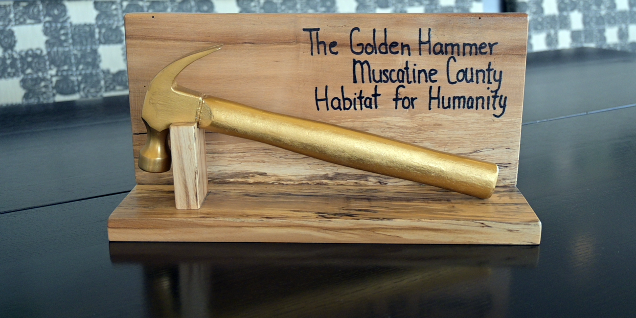 Muscatine’s Ross family got the keys to their new home earlier this year. At the dedication, Muscatine Habitat for Humanity president, Don Lampe, promised one area business would be awarded the “Golden Hammer” for above-and-beyond volunteerism efforts. Monday’s private award ceremony in KENT’s Headquarters lobby was the culmination of that promise. Those in attendance at the ceremony included KENT stakeholders from across the KENT family of companies who worked on the house.